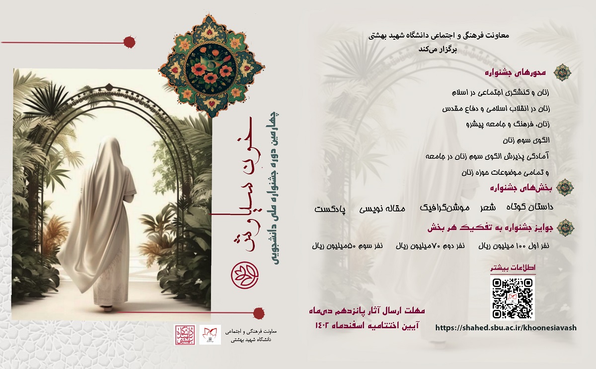 چهارمین جشنواره ملی دانشجویی خون سیاوش؛ درپنج بخش داستان کوتاه، شعر، موشن گرافی، مقاله و پادکست توسط معاونت فرهنگی و اجتماعی دانشگاه شهید بهشتی برگزار می‌شود.